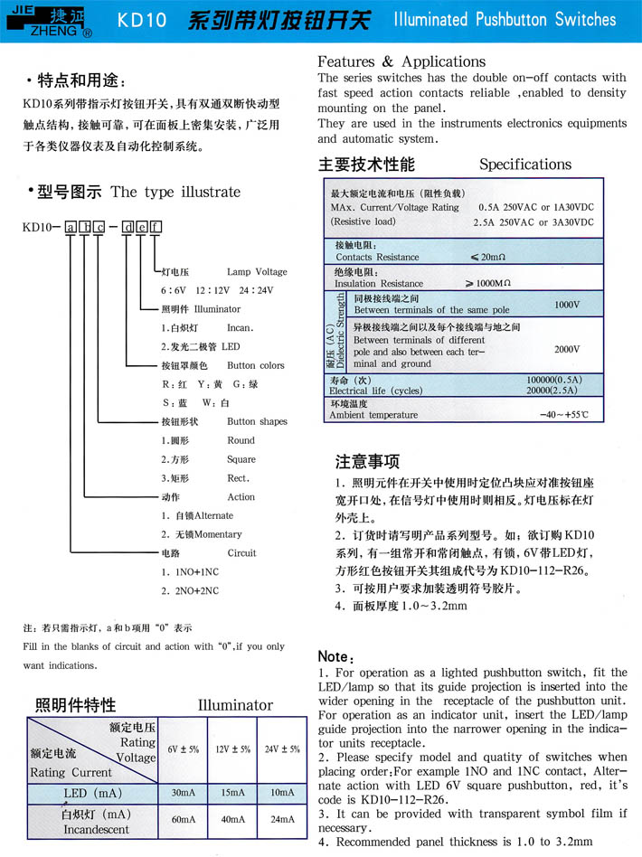 • KD10系列帶燈按鈕開關(guān) 產(chǎn)品型號:KD10系列帶燈按鈕開關(guān)